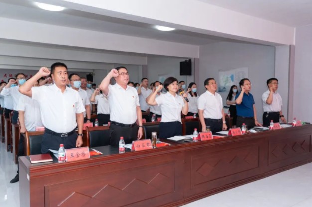 集團(tuán)黨委書記、董事長韓海霞同志帶領(lǐng)全體黨員重溫入黨誓詞