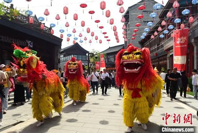 5月1日,滄州坊商街進(jìn)行非遺項(xiàng)目滄州獅舞表演。傅新春 攝
