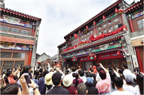 在風景如畫的南川老街,“五一”假期,眾多游客來到這里看表演、品美食、拍寫真、賞非遺,感受滄州獨特的運河文化。在這里,有以南川老街為主題創(chuàng)造點,展示繡球招親全過程的《南川喜事》情景劇演出;有包含樂器、舞蹈、走秀等節(jié)目的南川首屆少兒才藝匯演;有依托古風建筑,網(wǎng)紅特色美食云集,舞美演藝不斷的古風美食文化節(jié)……豐富多彩的文化活動,為游客帶來別樣的假日體驗。