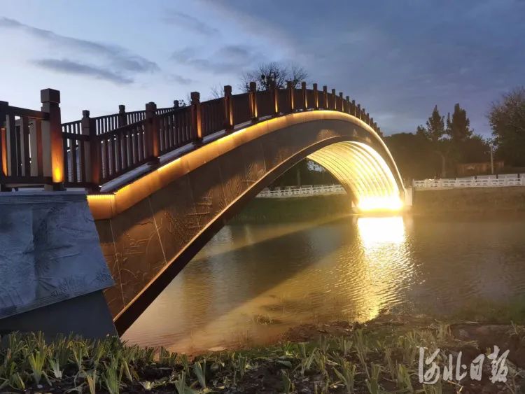 為實現(xiàn)大運河滄州主城區(qū)段通航并達到相應(yīng)景觀效果,連通兩岸的步行橋設(shè)計成了拱形。河北日報記者張嵐山攝