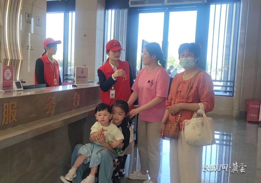 青年團員志愿者為游客辦理兒童推車服務(wù)。通訊員 于麗娟 攝