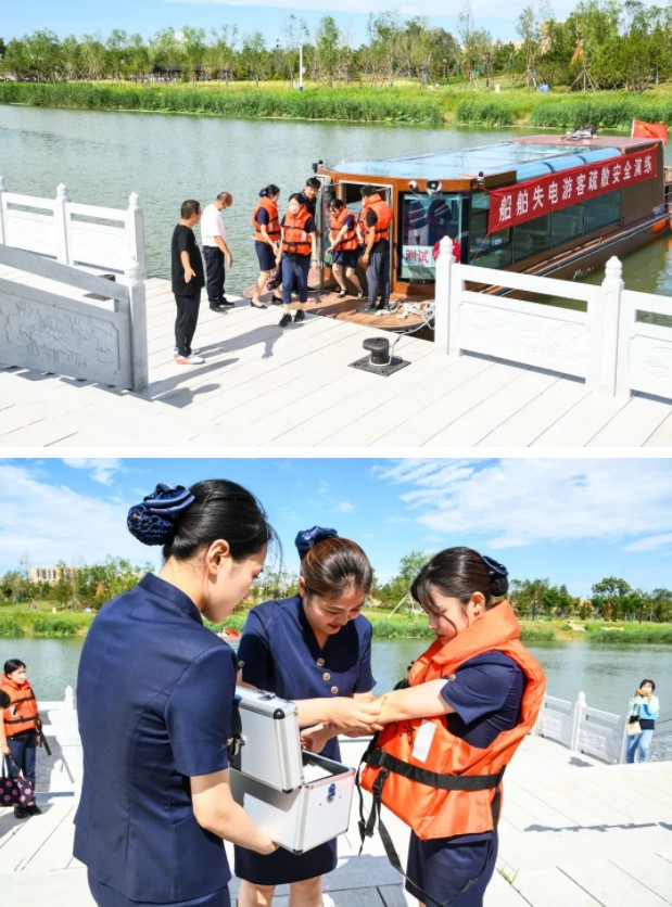 模擬游船在運(yùn)行中出現(xiàn)電力故障無法運(yùn)行的情況。青年志愿者、講解員、電力保障工作人員各司其職,迅速開展游客安撫、船只調(diào)度、游客轉(zhuǎn)移、電力檢修等應(yīng)急措施。