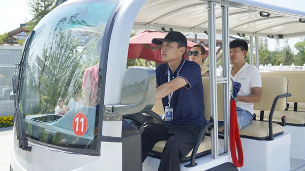 今年24歲的常慶偉是園博園內(nèi)的一名觀光車司機(jī),他告訴記者,園區(qū)內(nèi)共有60輛觀光車,循環(huán)為游客服務(wù)。整個園區(qū)有70多名觀光車司機(jī),車輛不停,司機(jī)輪換上崗。