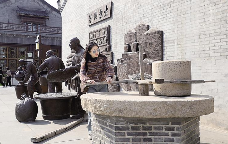 走進(jìn)滄州坊,U型布局的商街通衢開闊,雜技雕塑、拴馬樁、鏢旗鏢箱等景觀小品應(yīng)有盡有,同時復(fù)原了運(yùn)河沿岸生活場景。明清風(fēng)格的建筑,處處飛檐斗拱、雕梁畫棟,彩繪色澤艷麗、惟妙惟肖。熱鬧的街區(qū)內(nèi),四合院幽靜雅致、戲樓古香古色、城關(guān)巍峨聳立、沖天牌樓再現(xiàn)漕運(yùn)時期碼頭繁華盛景……三三兩兩的游人漫步在古建院落間,悠然自得,十分愜意。