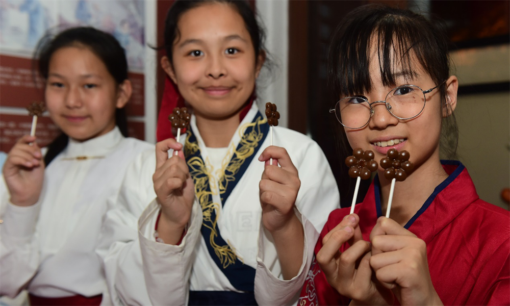 滄州車站小學(xué)的小學(xué)生展示在南川老街滄州中西醫(yī)結(jié)合醫(yī)院國醫(yī)堂,制作的“中藥養(yǎng)生棒棒糖”。傅新春攝