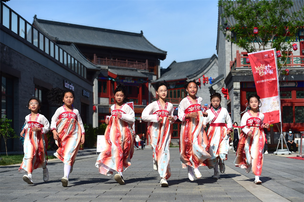 來自滄州新華區(qū)的孩子身著古裝,在滄州坊商街游玩。傅新春攝