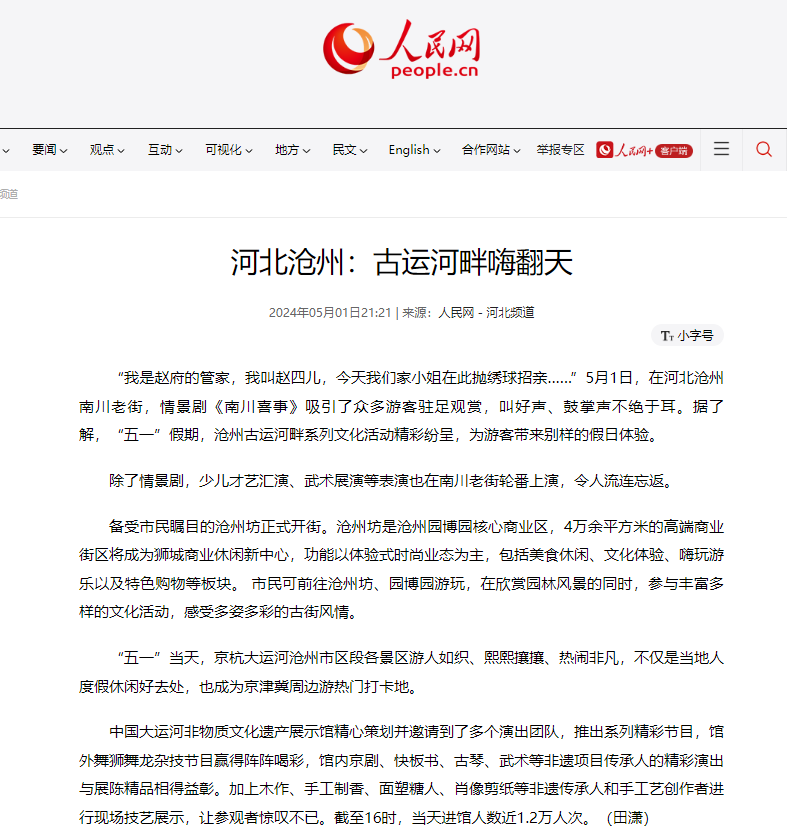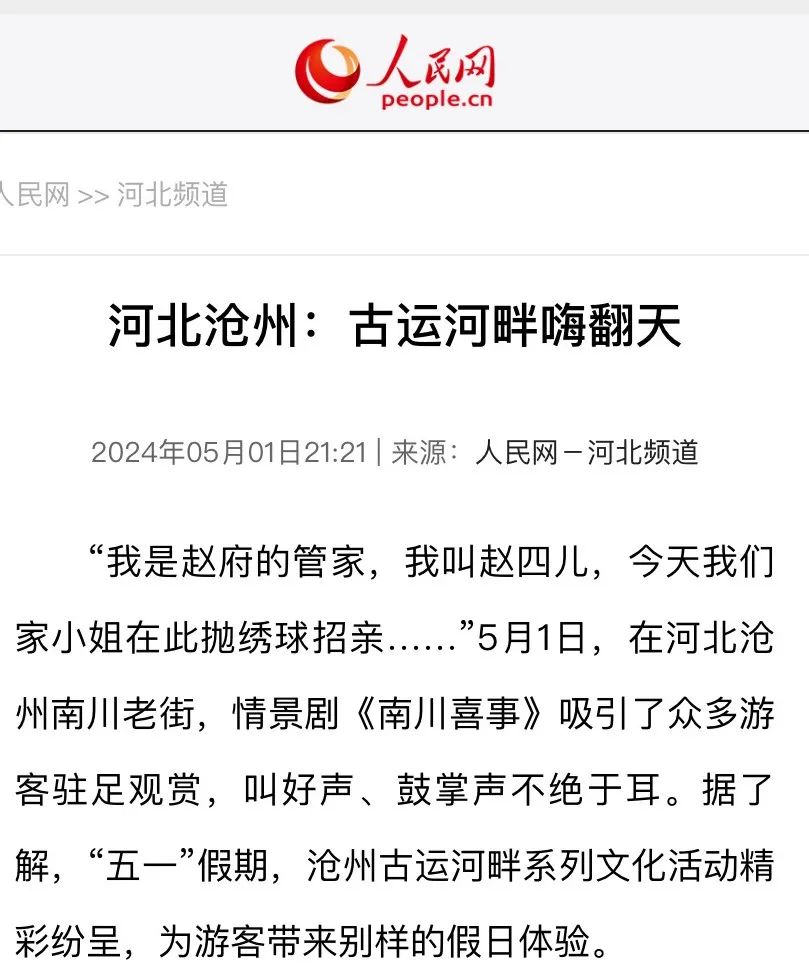 助力滄州躋身全國(guó)“五一”最受游客追捧的