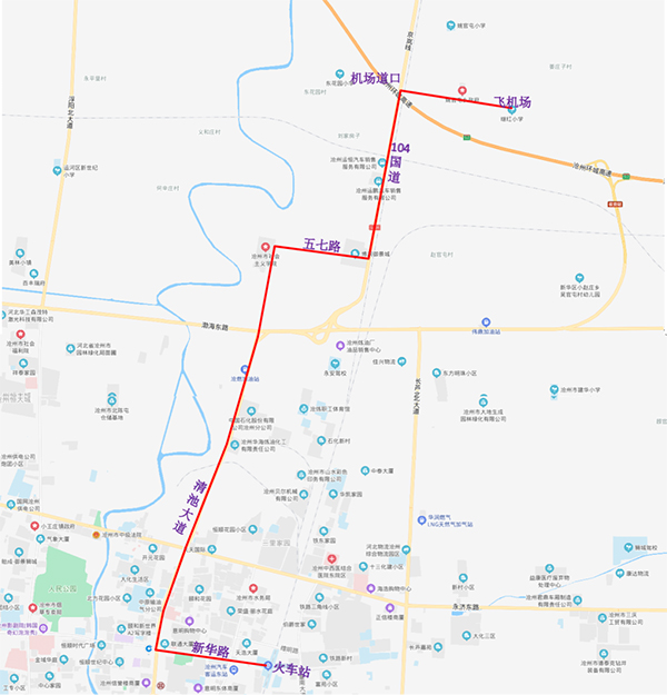 高鐵西站、滄興總部、宏宇大廈、傳媒大廈、十里香大廈、陶莊子、魏莊子、市政務(wù)服務(wù)中心北、滄州體育館、交通局、衡泰律師事務(wù)所、一世界·書香華府、市場(chǎng)監(jiān)督管理局、頤和文園、同天購物中心南門、市政府、河北銀行、滄州市人大、眼科醫(yī)院(中心醫(yī)院兒童院區(qū))、浮陽大道廣電小區(qū)、團(tuán)結(jié)小區(qū)、公園西門、意明家興超市、愛齒口腔門診、發(fā)電廠、中國人保大廈、十五中學(xué)、開元花園、滄州大化集團(tuán)公司、罐罐兒童樂園、大運(yùn)河非遺展館、園博園二號(hào)門、滄州坊停車場(chǎng)、園博園一號(hào)門、園博園一號(hào)門停車場(chǎng)