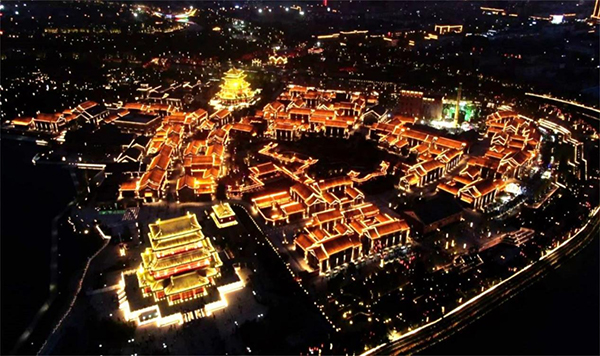 滄州南川樓文化商街夜景(航拍圖)。滄州日報社供圖